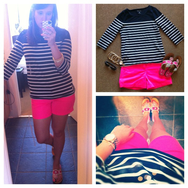 | Top: Nautica (Old) Similar Here//Shorts: J. Crew Chinio 5" Neon Pink//Shoes: Jack Rogers//Accessories: BlueTique, MK, Ray Ban |